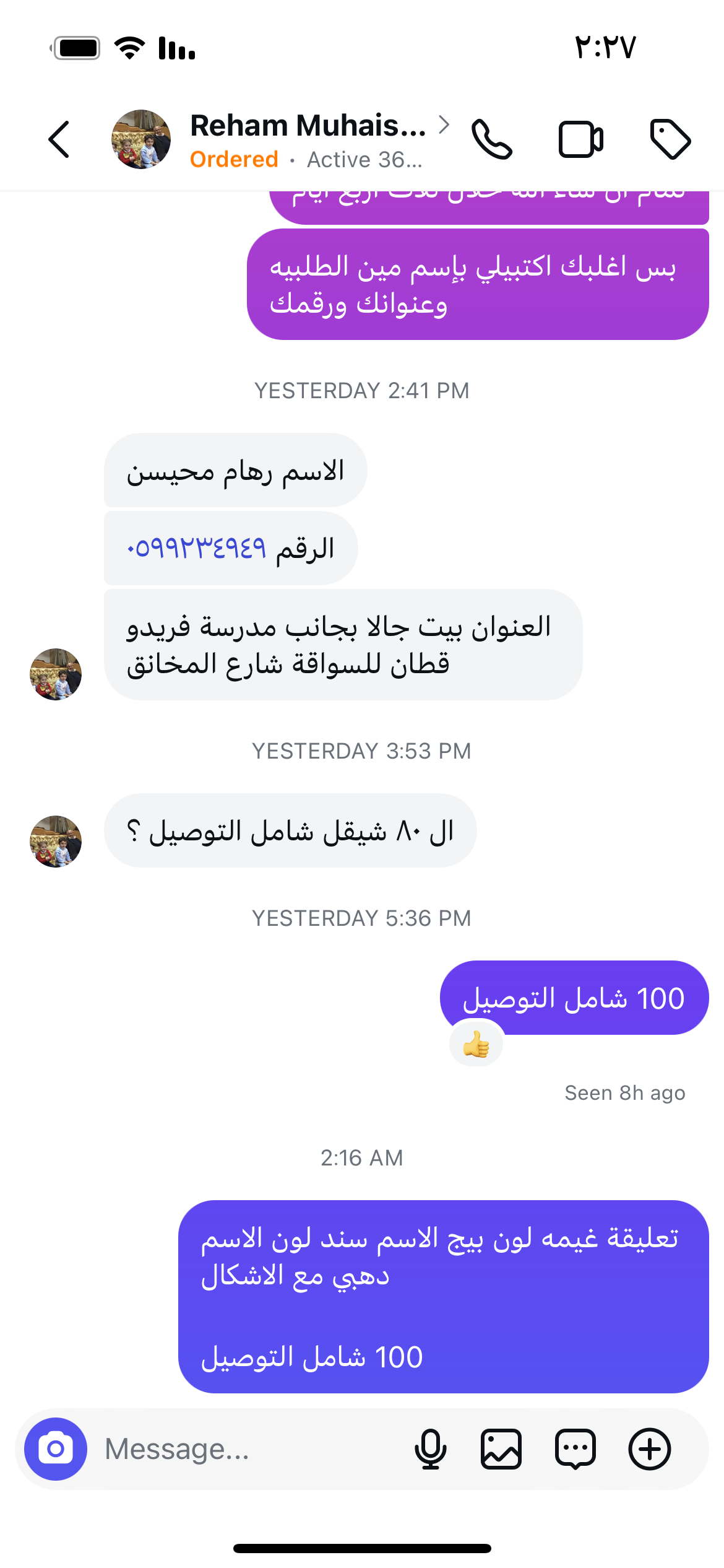 | سعر التوصيل | شيكل |