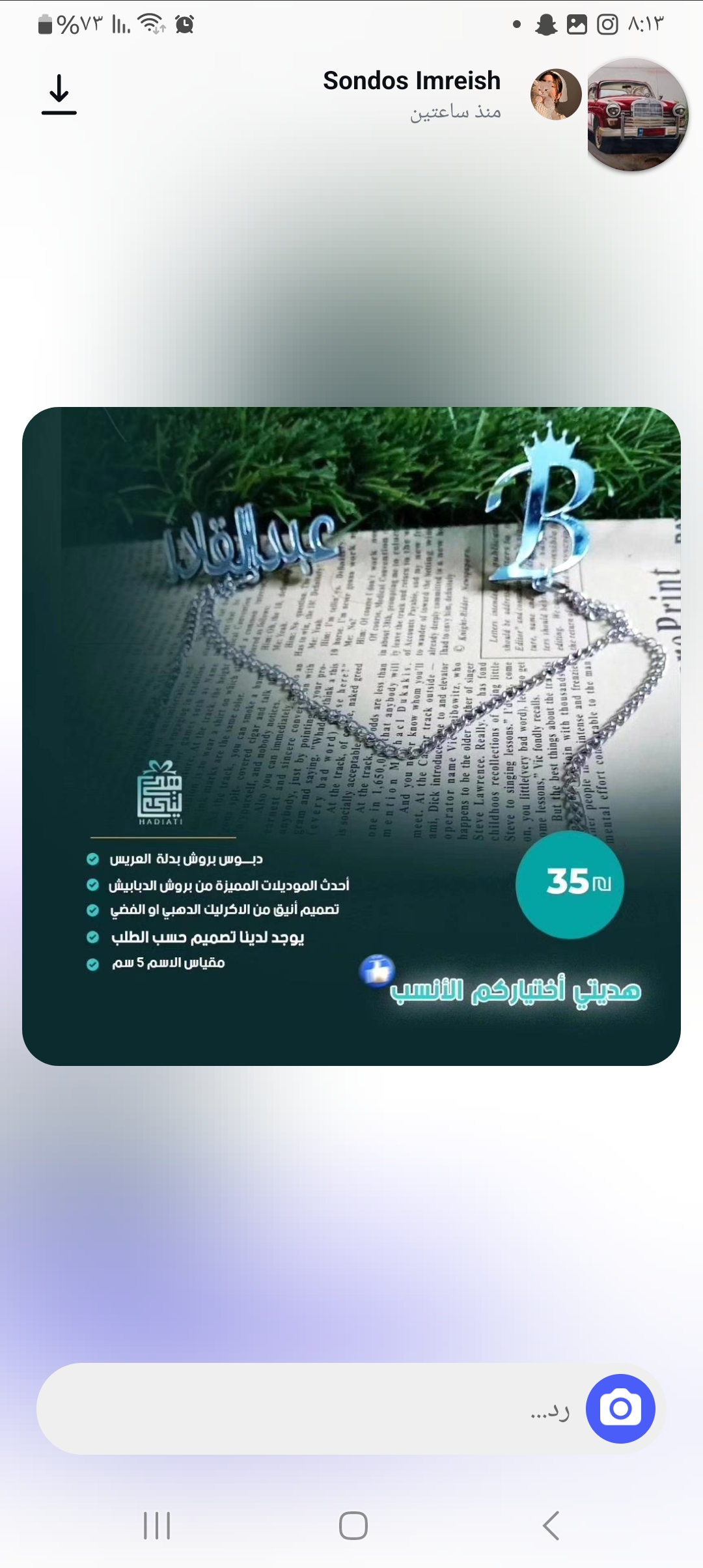 بروش بدله اسم سامر وحرف الs ع تاج لون فضي