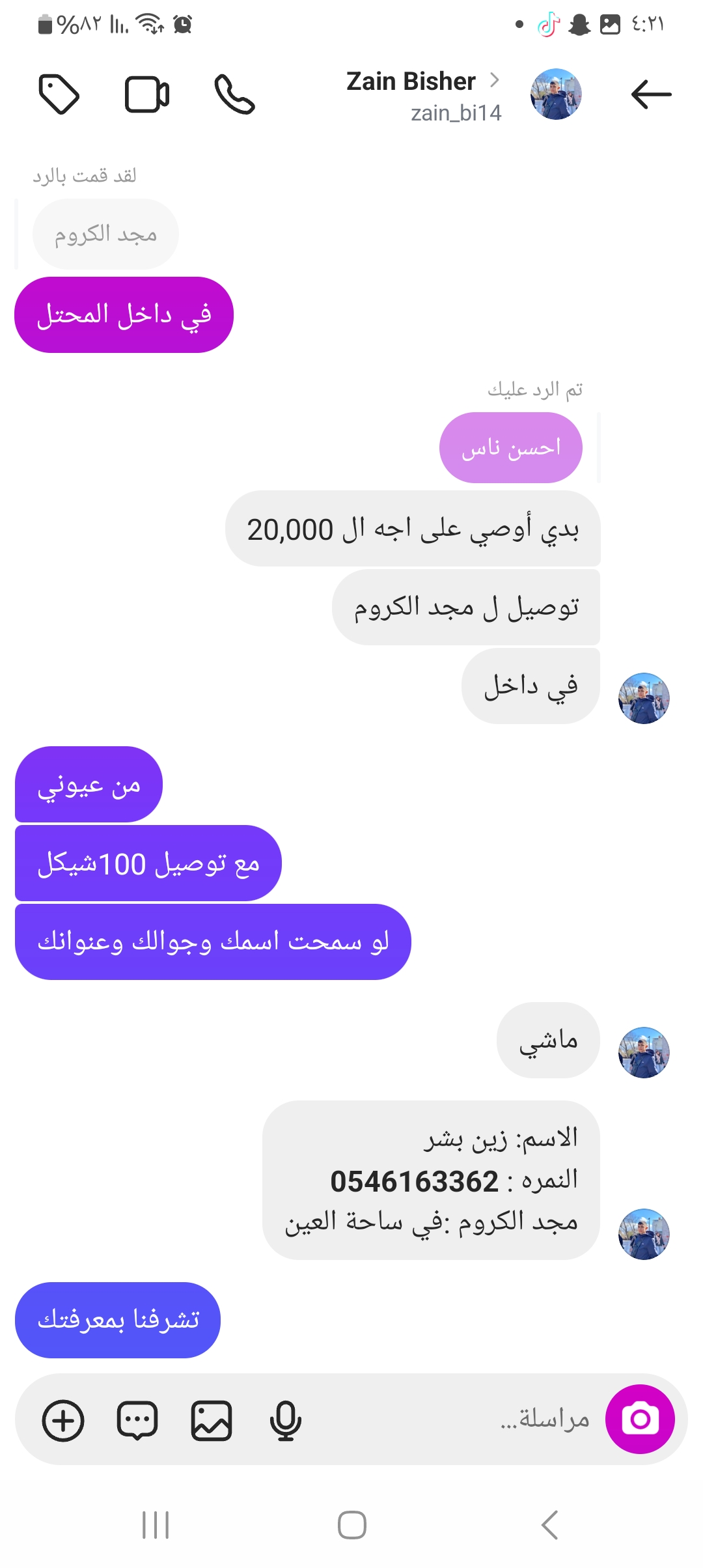 اسم الزبون علا علوان مندوبه إسراء