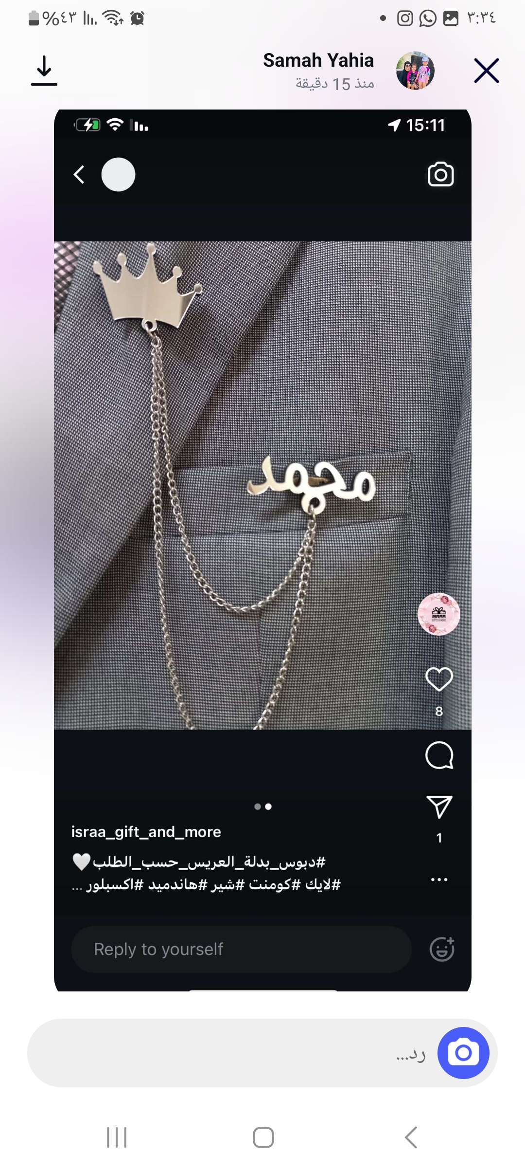 بروش بدله اسم ناصر مع تاج لون ذهبي لغه عربيه