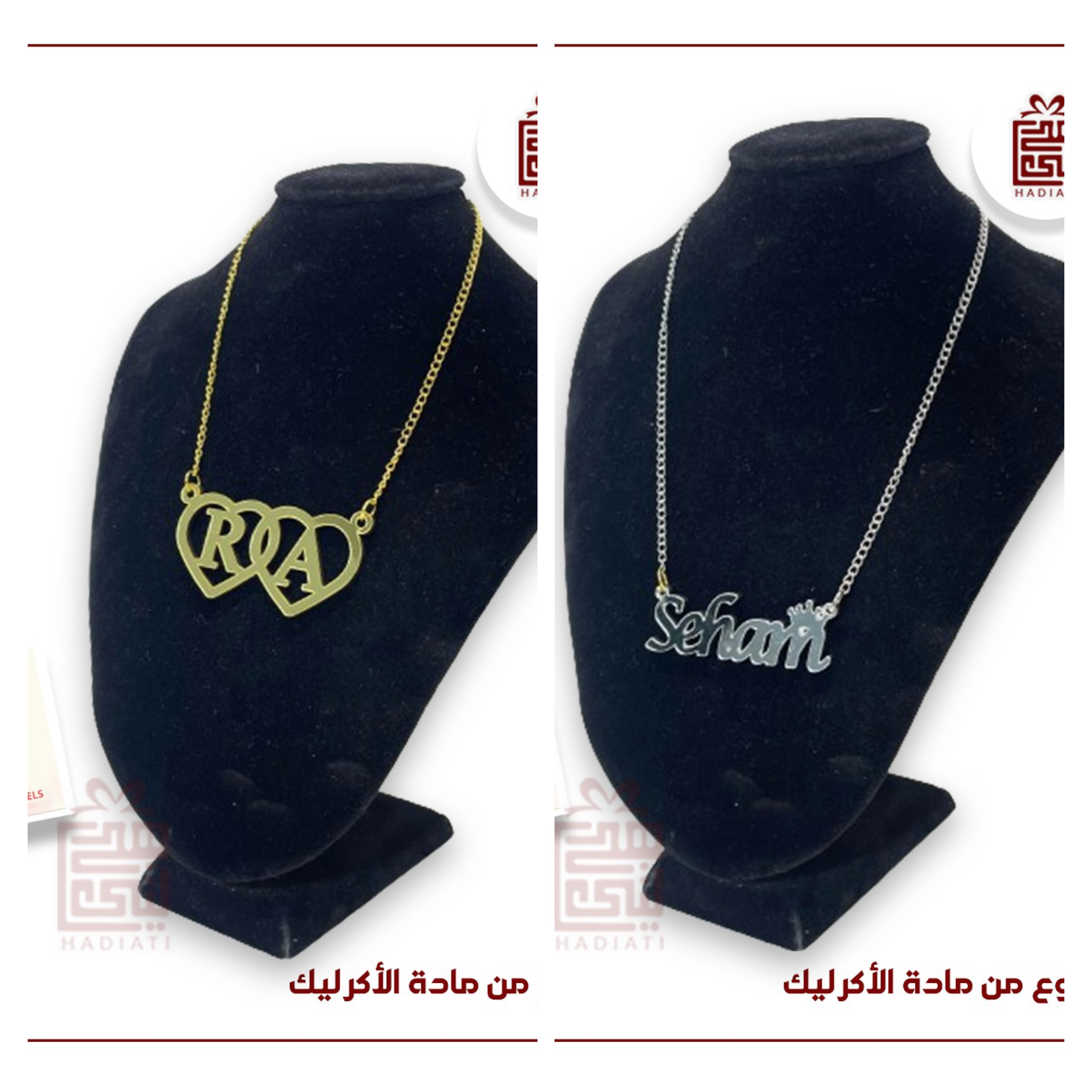 عدد اتنين سناسيل ... واحد حرفين لون دهبي R و A ..... التاني اسم RAZAN لون فضي