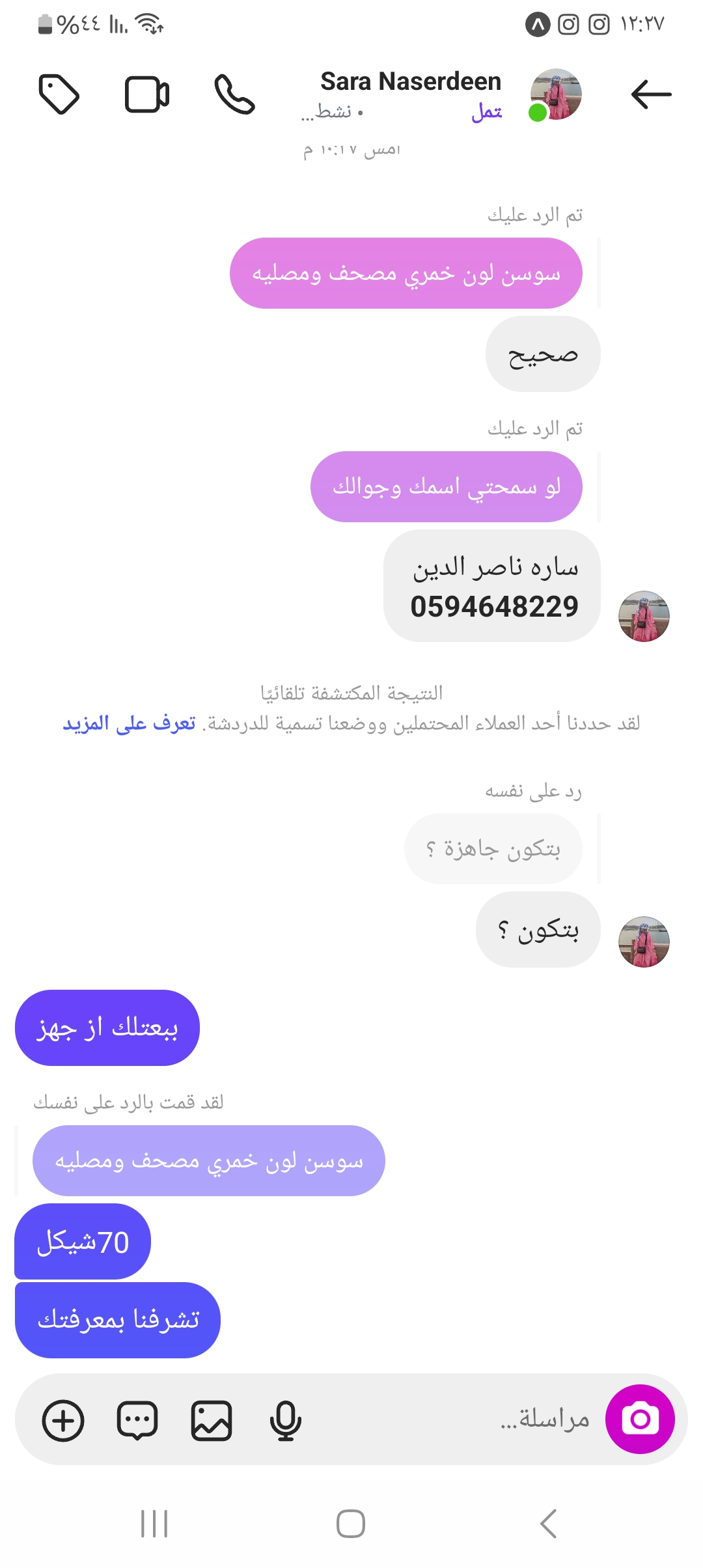 | السعر المبيوع | 70 شيكل |
