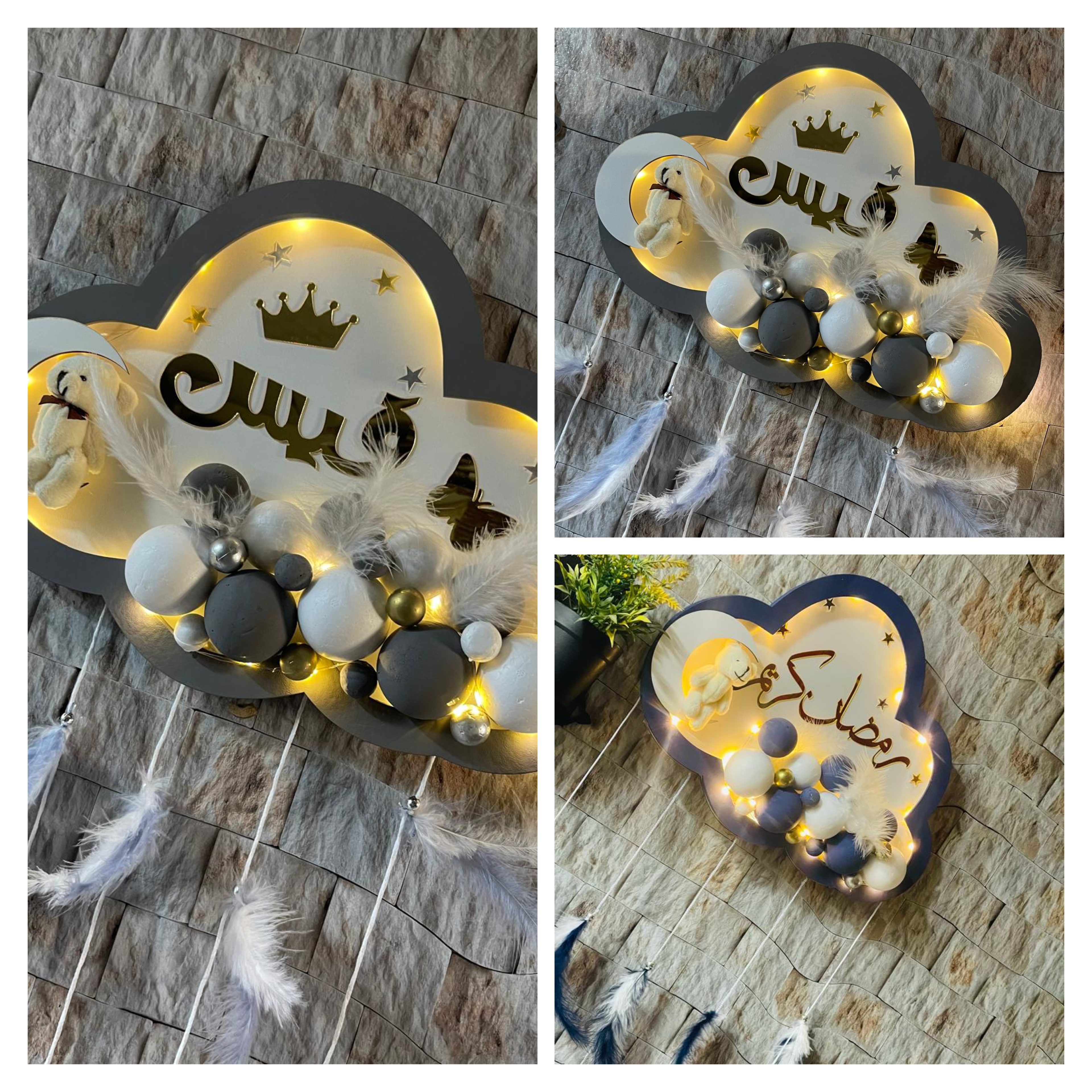 3-تعليقة غيمه لون كحلي الاسم نوح لون الاسم دهبي مع الاشكال…..