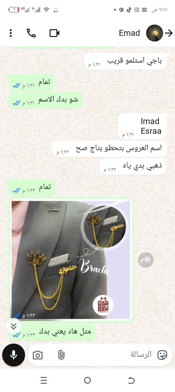 بروش لون دهبي الاسم Imad وجوا التاج اسم