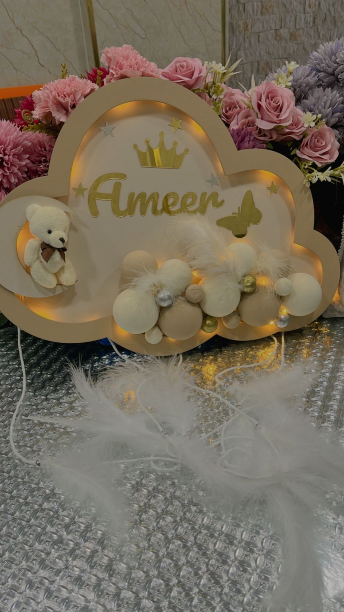 تعليقة غيمه لون بيج الإسم تميم لون الاسم ذهبي مع الاشكال