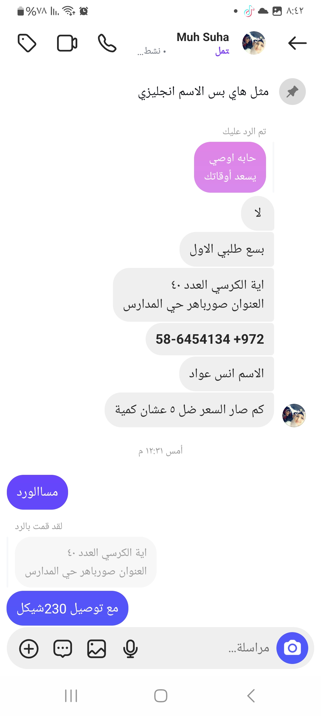 | سعر التوصيل | شيكل |