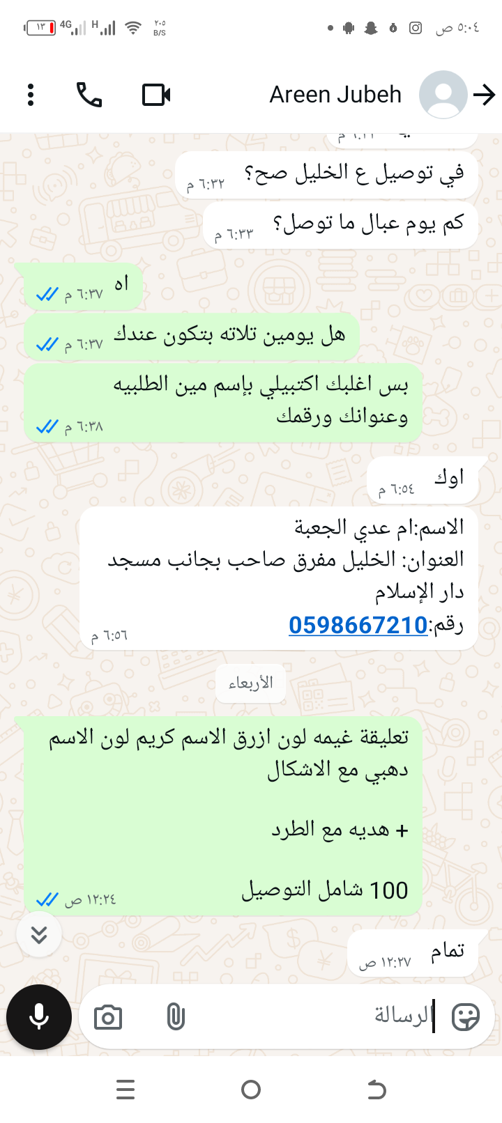 | سعر التوصيل | شيكل |