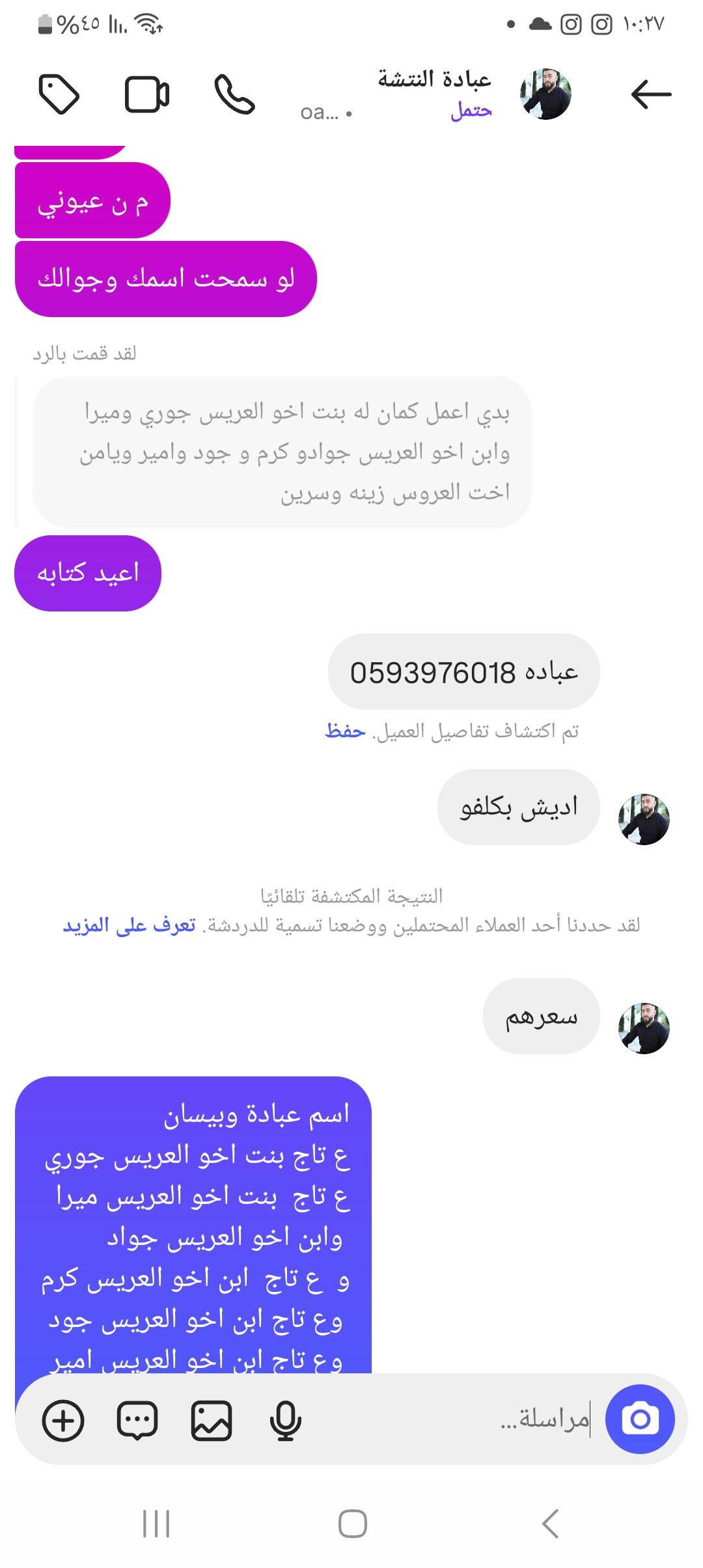 و ع تاج ابن اخو العريس وع جهه تانيه جواد