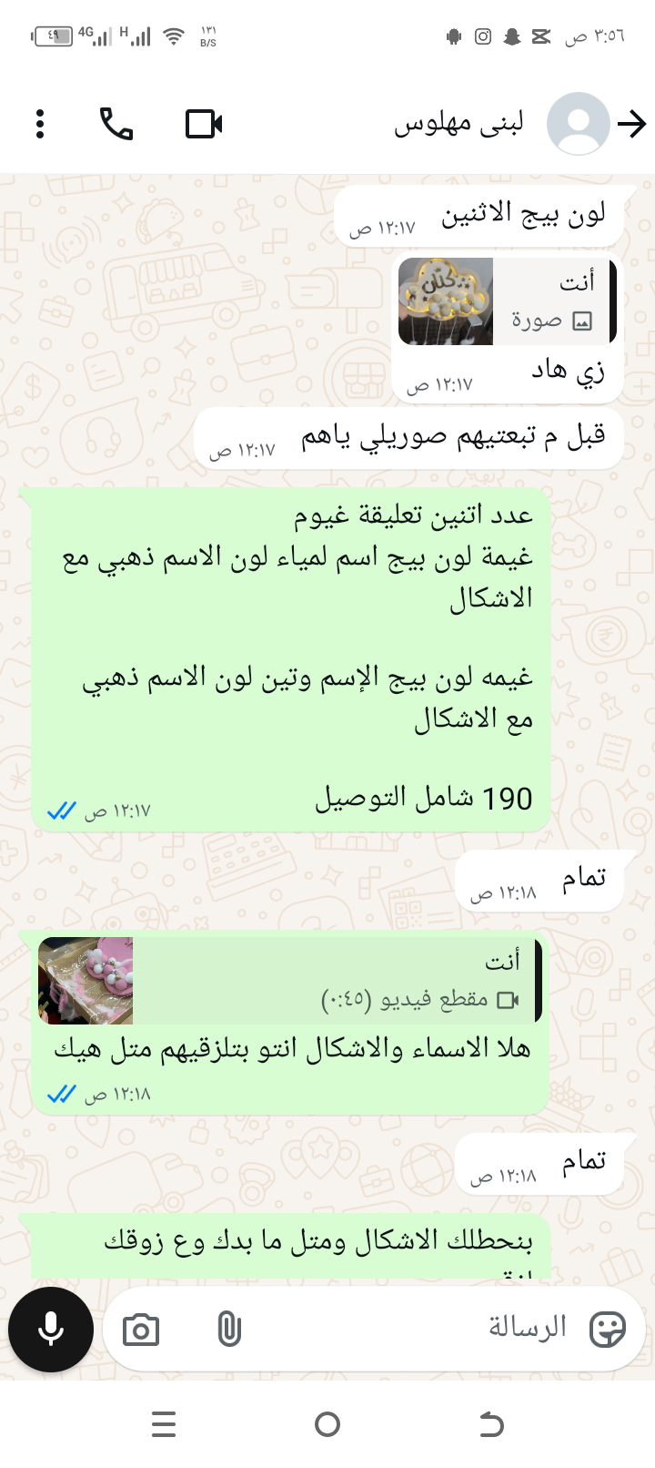(غيمه لون بيج الإسم وتين لون الاسم ذهبي مع الاشكال )