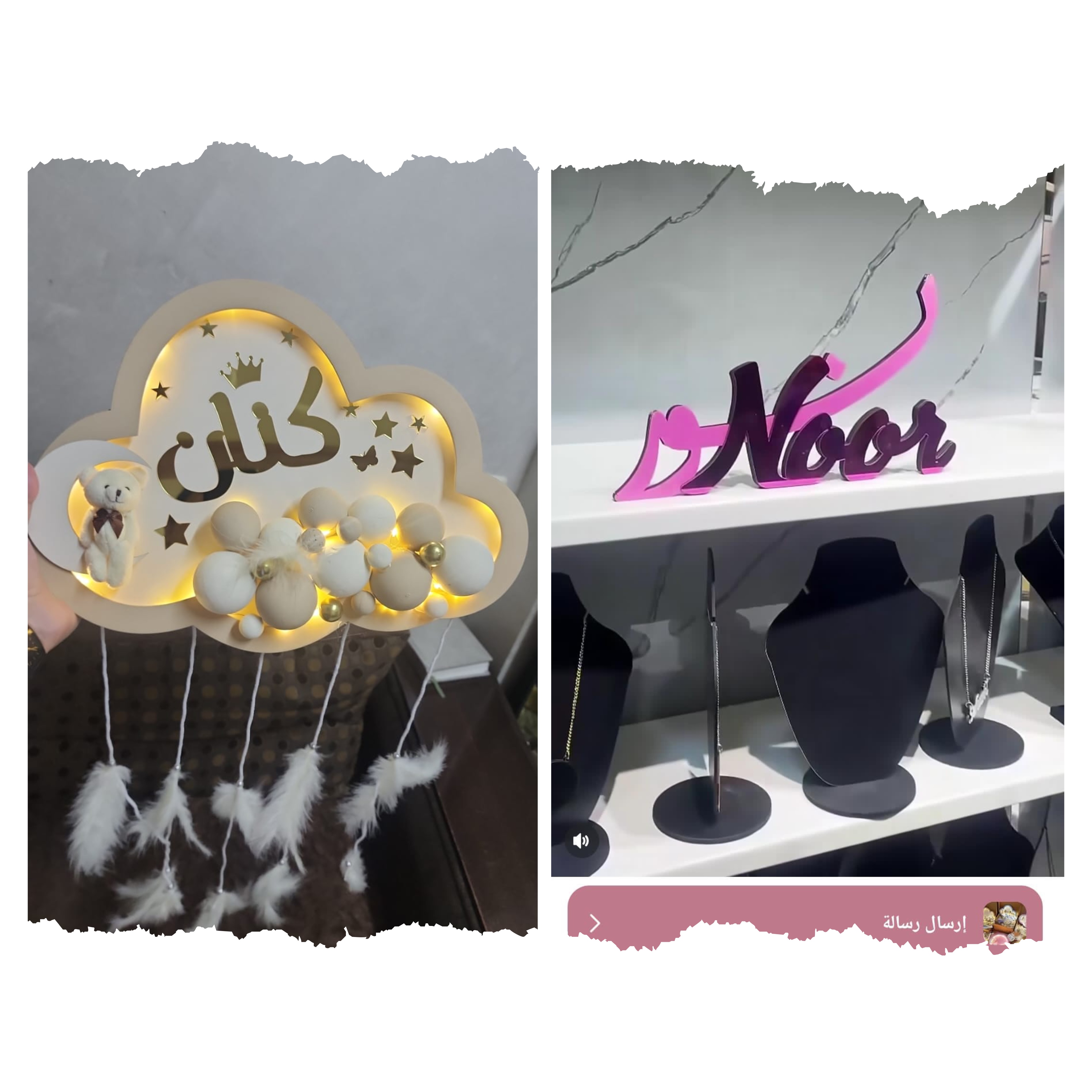 (تعليقة غيمه لون بيج الإسم حسن لون الاسم ذهبي مع الاشكال ) ….