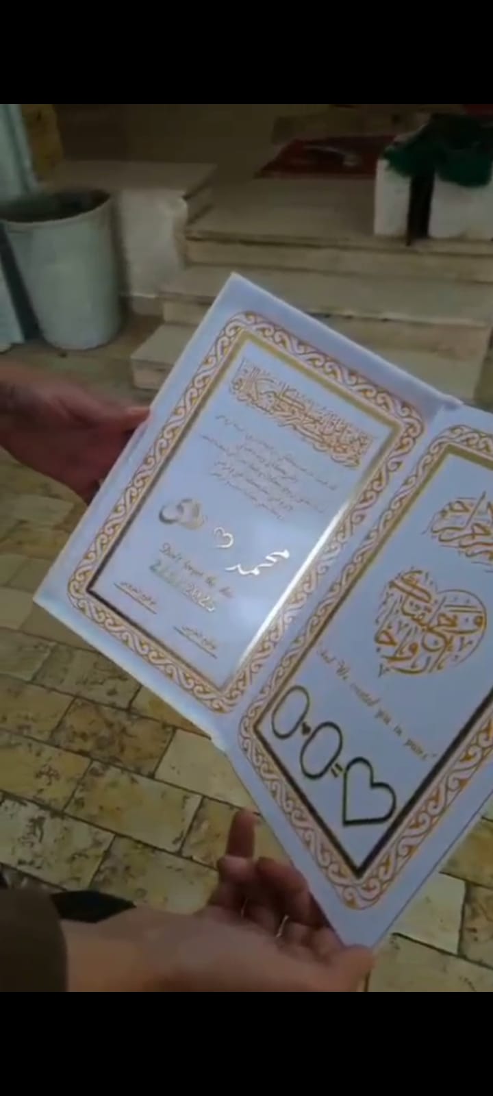 بصامه عروس ع شكل كتابه لون ذهبي مكتوب عليها نفس شي