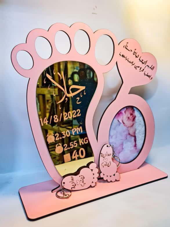 درع معلومات الطفل اكرليك مع خشب لون زهري …..