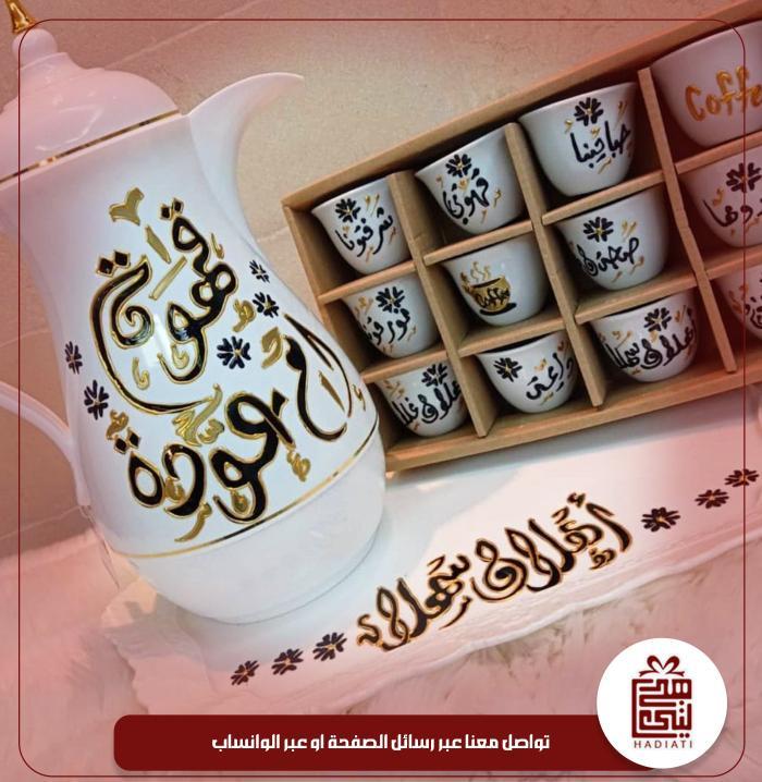 عدد اتنين ....دلة مع الصينيه مع 12 فنجان ...مكتوب عليهم.....