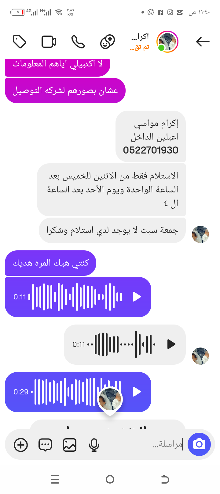 الاتصال ع لزبونه قبل بوقت من التسليم
