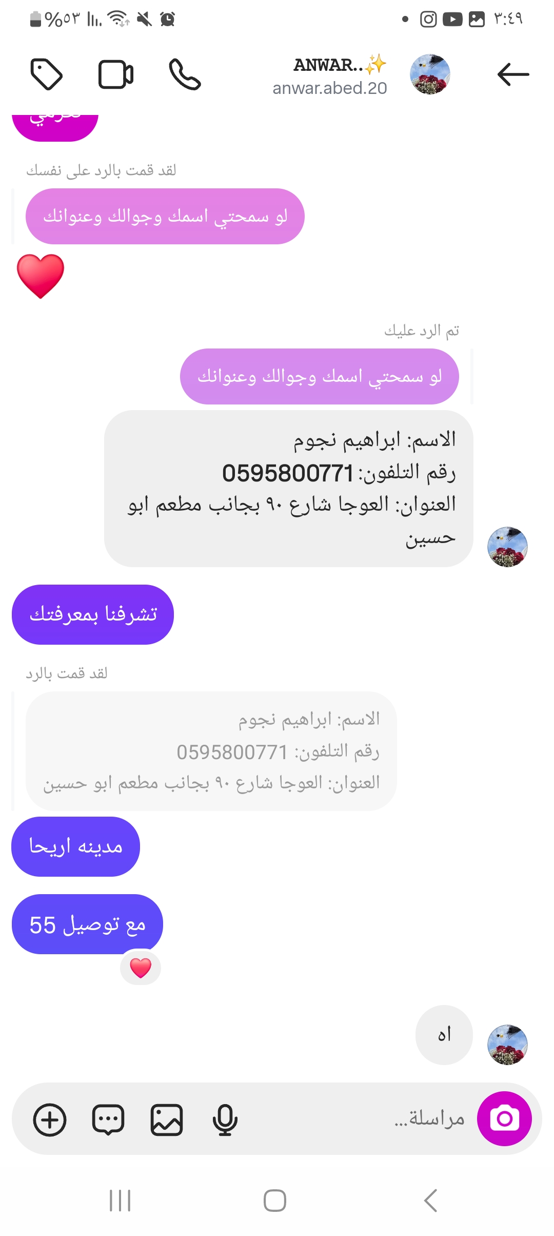 | السعر المبيوع | 55 شيكل |