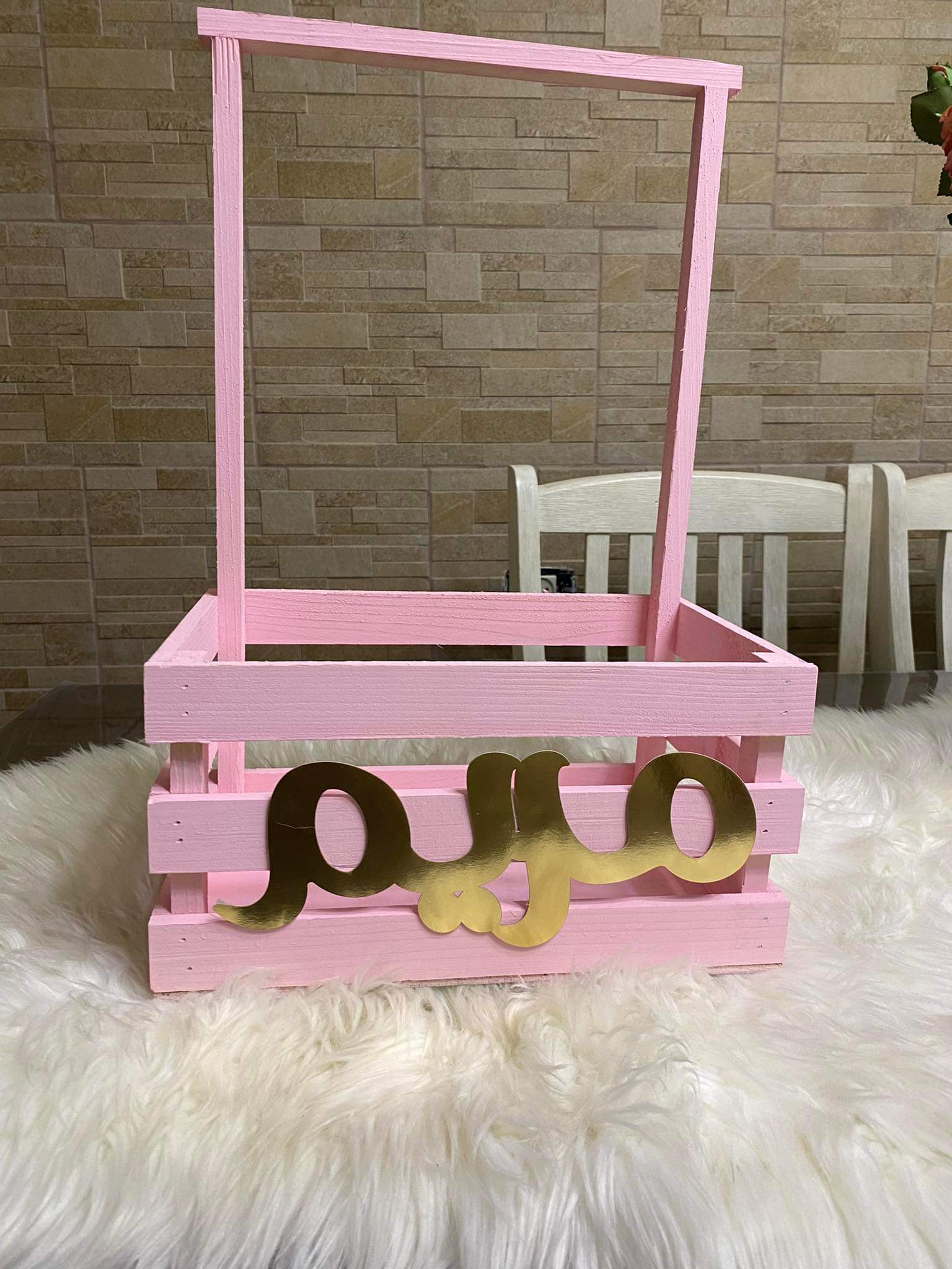 صندوق جهاز البيبي لون زهري الاسم لُجين لون الاسم دهبي مع الاشكال