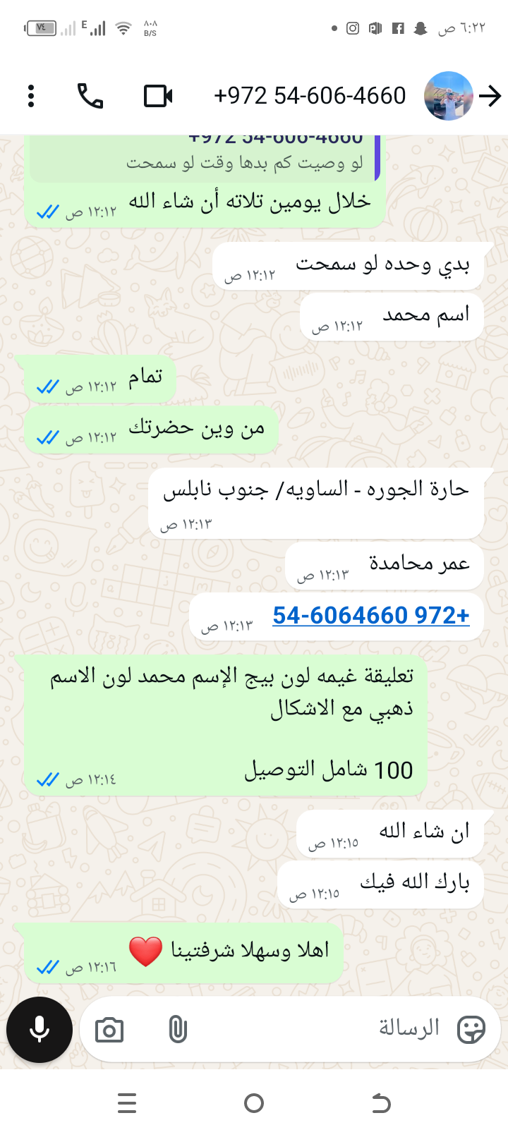 | سعر التوصيل | شيكل |