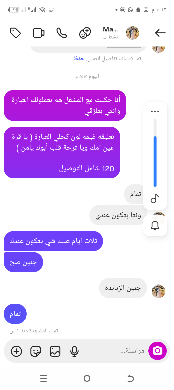 تعليقه غيمه لون كحلي العبارة ( يا قرة عين امك ويا فرحة قلب أبوك يامن )