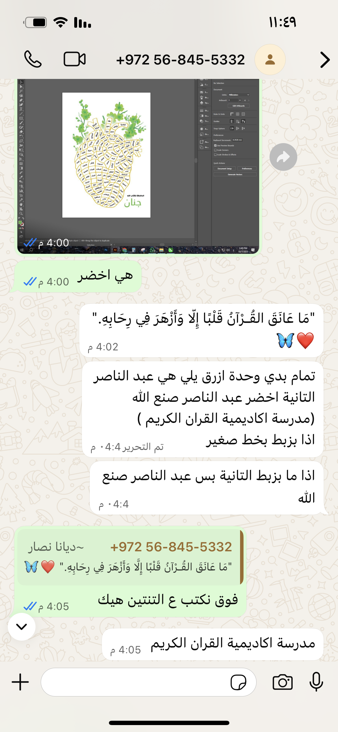 1- الورد ازرق والكتابه عليه من فوق ( "مَا عَانَقَ القُـرْآنُ قَلْبًا إِلَّا وَأَزْهَرَ فِي رِحَابِهِ." ) والاسم تحت عبد الناصر …