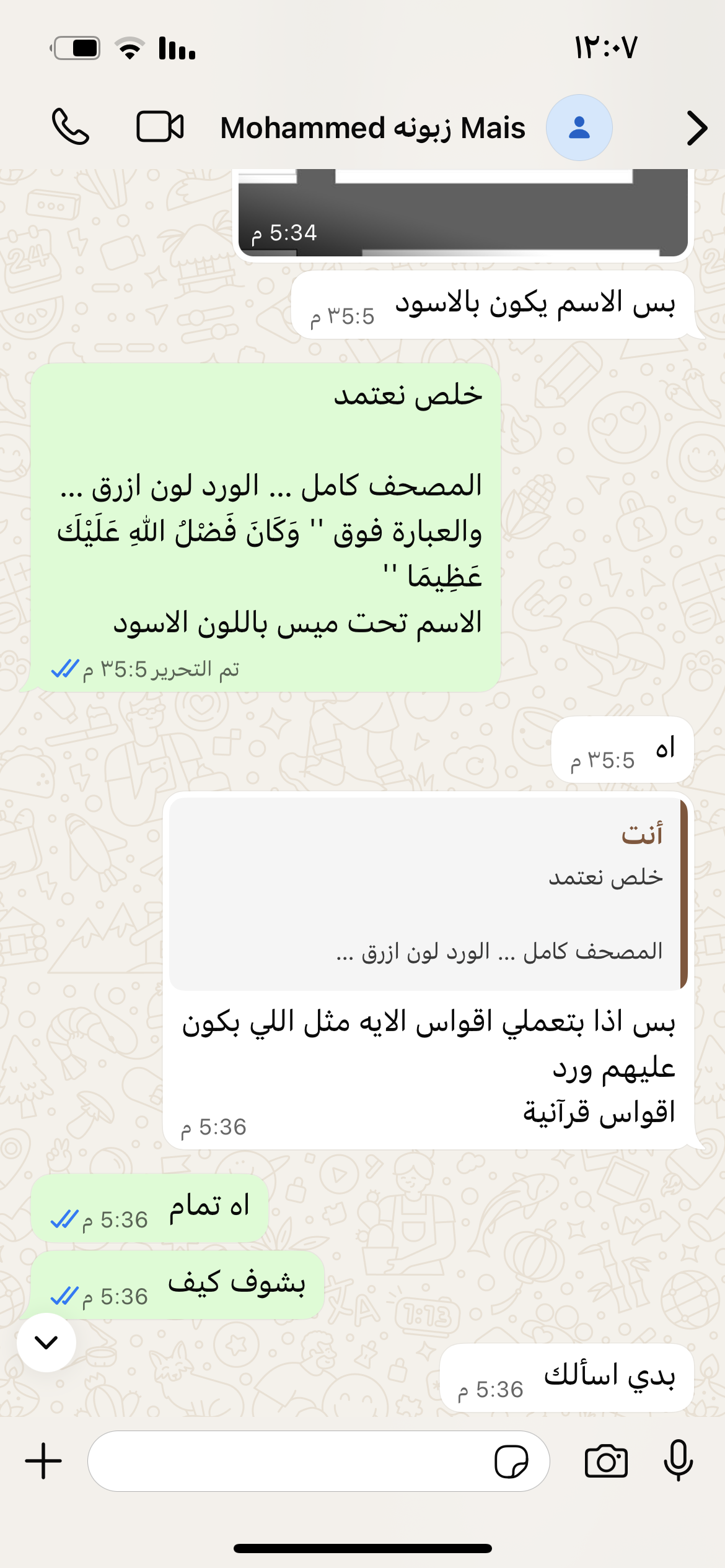 الاسم تحت الميس باللون الاسود مع زخرفة