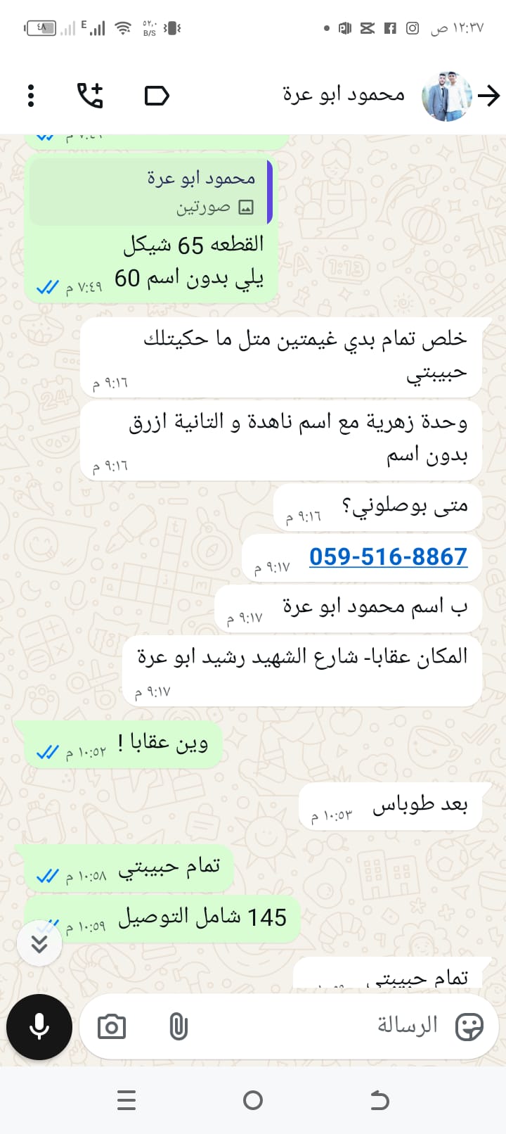 | السعر المبيوع | 145 شيكل |