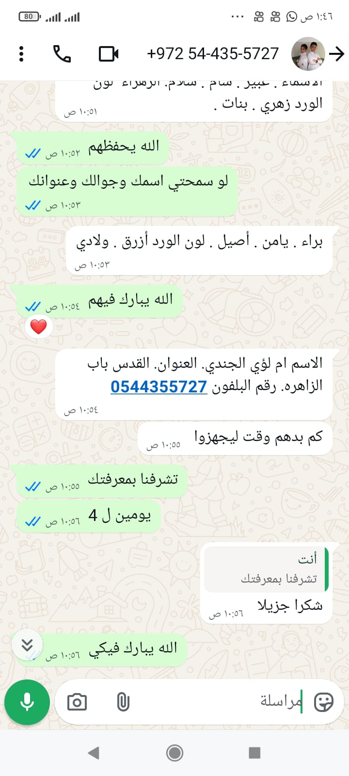 الأسماء البنات : ■عبير .■ شام . ■سلام. ■الزهراء■مسك لون الورد زهري .