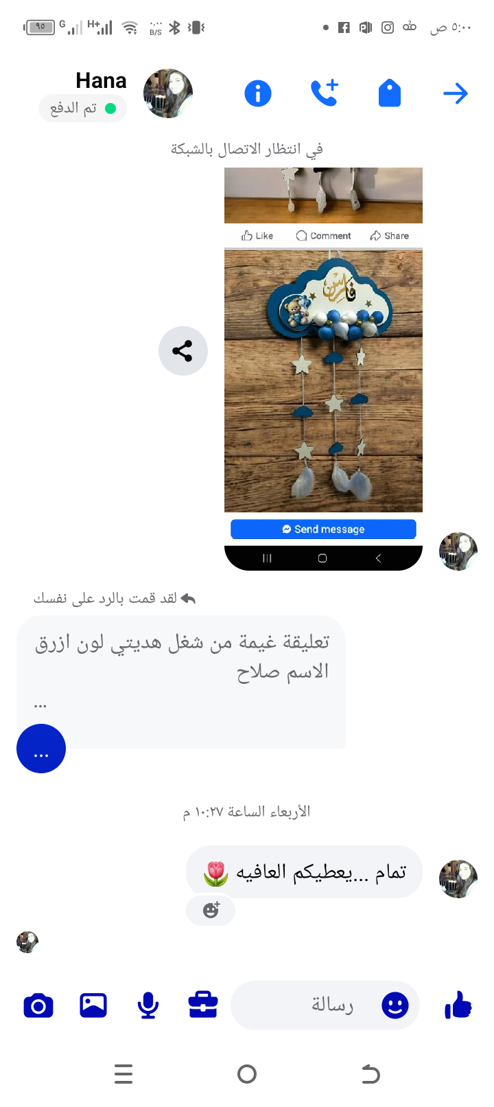 تعليقة غيمة من شغل هديتي لون ازرق الاسم صلاح