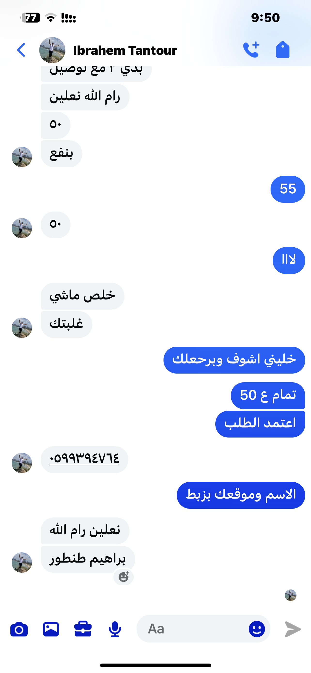 | السعر المبيوع | 50 شيكل |