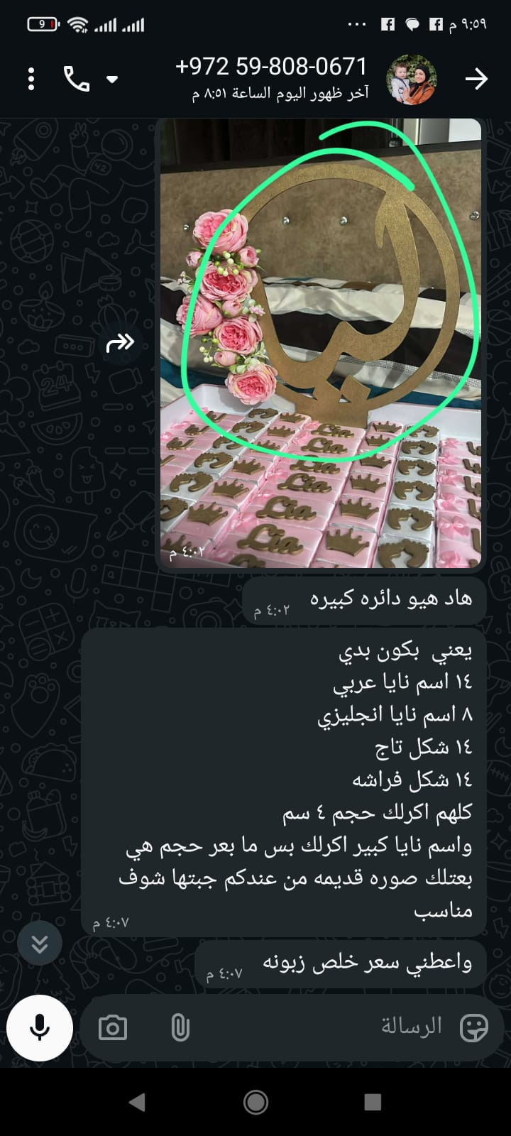 ■اسم نايا الحجم 30سم جوه دائره لو ن ذهبي لغه عربيه