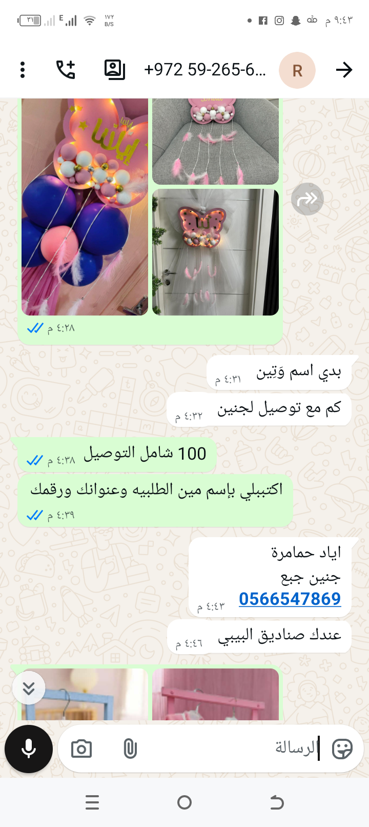 تعليقة فراشة لون زهري الاسم وَتِين لون الاسم ذهبي مع الاشكال