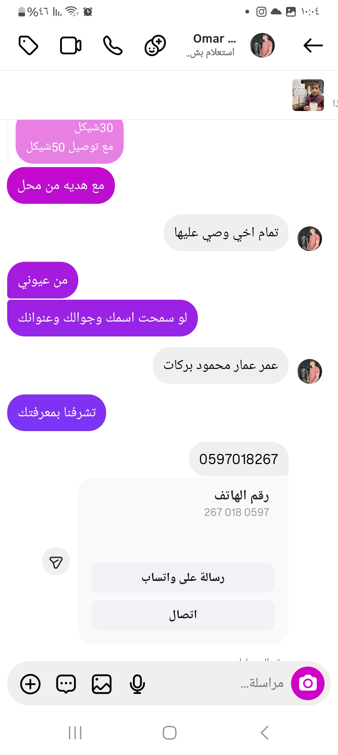| السعر المبيوع | 50 شيكل |