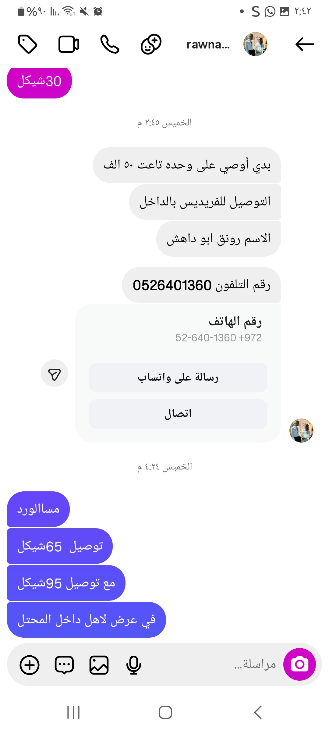 | سعر التوصيل | شيكل |