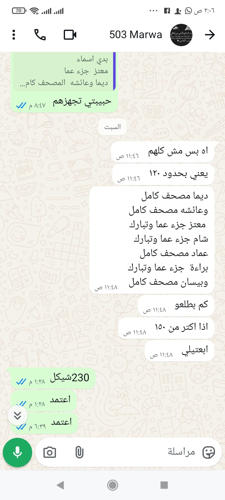 برواز بازل قلب القران الحجم A4 عدد 7 مكتوب عليها بسم الله الرحمن الرحيم نور قلبك بحفظ القرآن شد همه وأبدا ●ديما مصحف كامل لون ورد زهري ●عائشه مصحف كامل لون ورد زهري ▪︎معتز جزء عما وتبارك لون ورد ازرق ●شام جزء عما وتبارك لون ورد زهري ●عماد مصحف كامل لون ورد ازرق ●براءة جزء عما وتبارك لون ورد زهري ●بيسان مصحف كامل لون ورد زهري