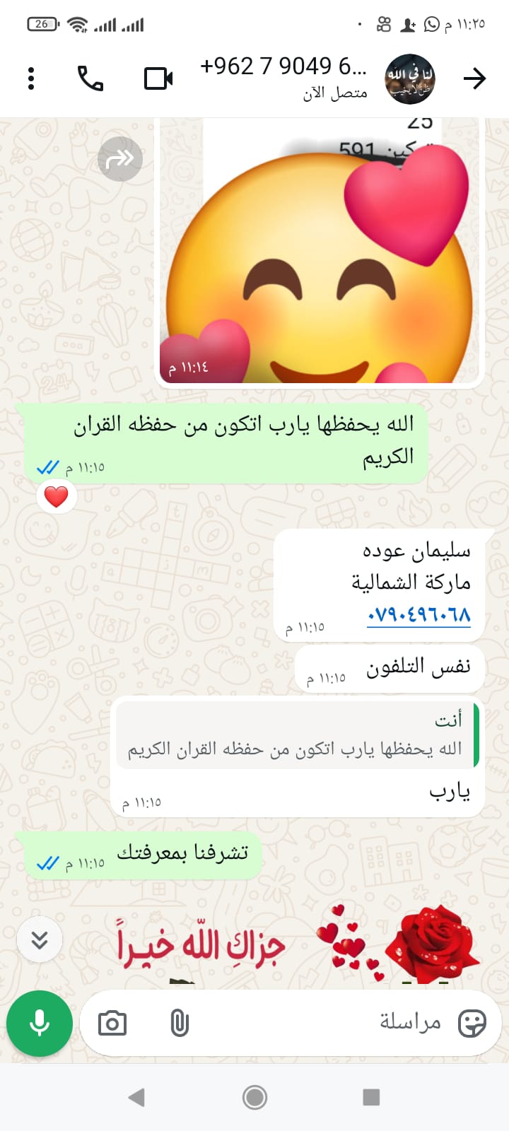 اسم الحافظه لكتاب الله وفاء لون ورد زهري