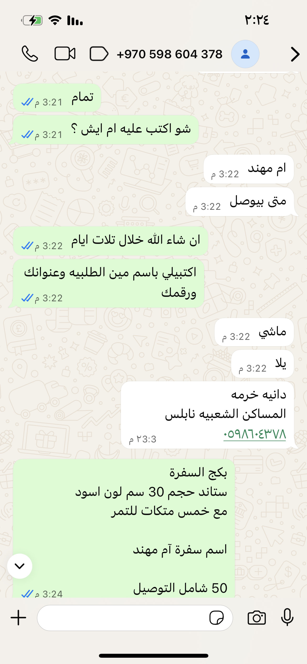 | السعر المبيوع | 50 شيكل |