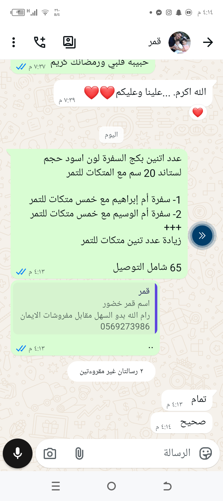 2- سفرة أم الوسيم مع خمس متكات للتمر