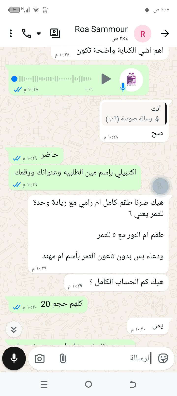 سفرة ام رامي مع زيادة وحدة للتمر يعني ٦