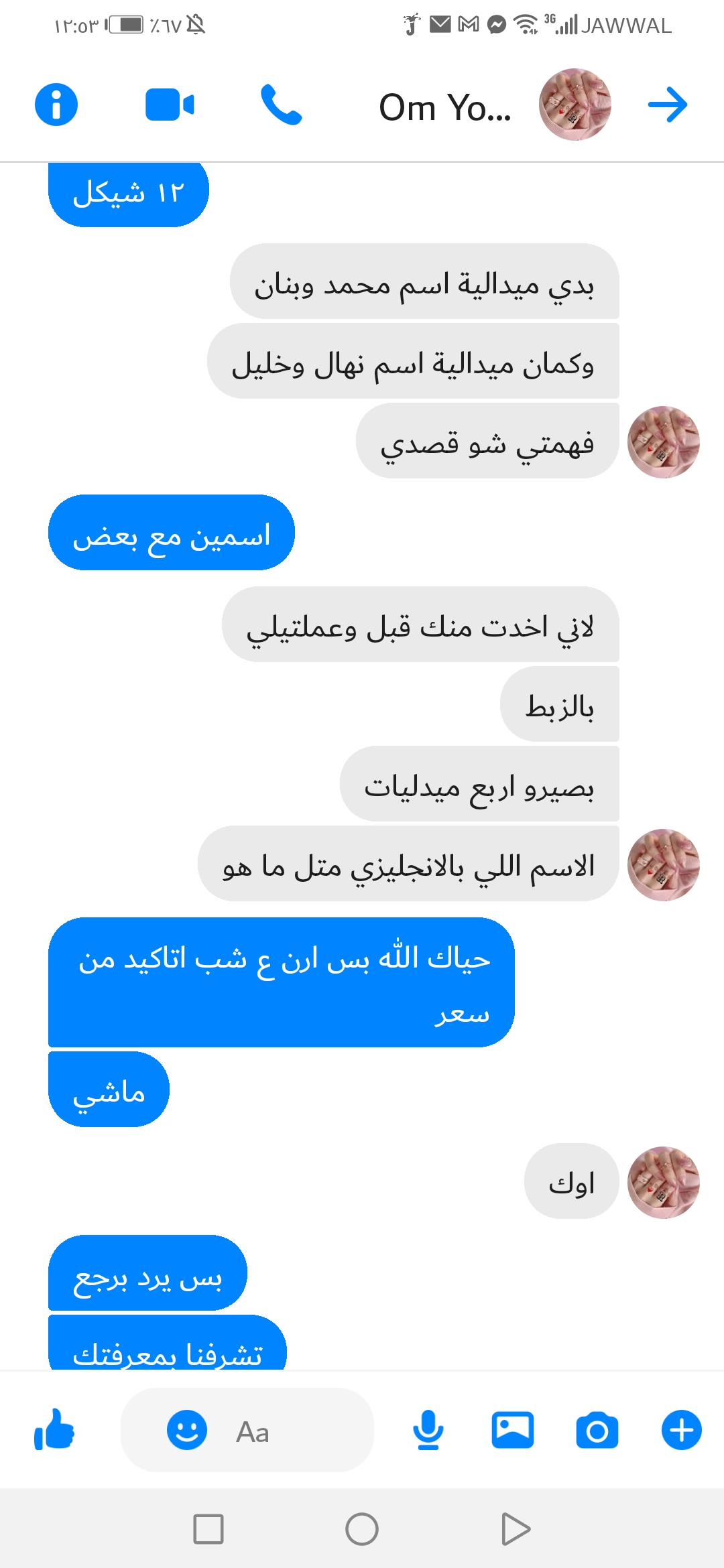 | ملاحظات | ٣٥ _ ٣٠ شيكل اضافة ٥ شيقل لكل اسم زيادة |