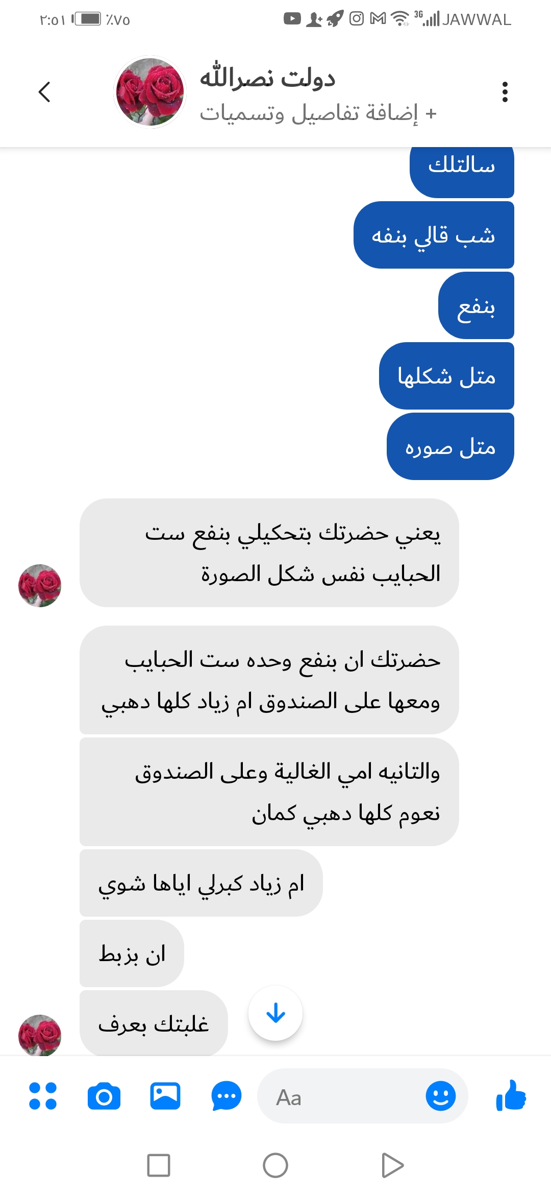 وحده كلمه ( ست الحبايب) ومعها على الصندوق ام زياد كلها دهبي لو سمحت كبرها