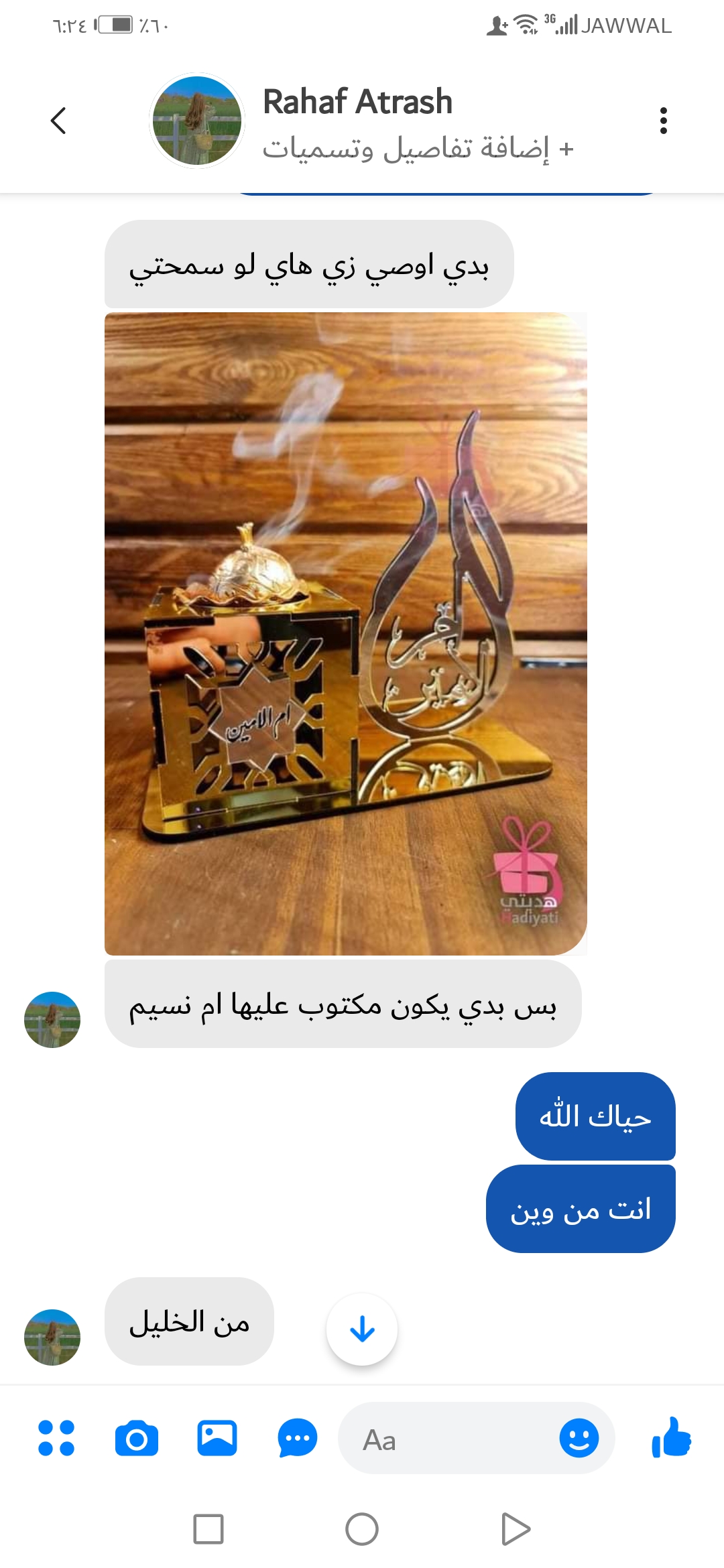الاسم مع مبخره سعرها45 شيكل توصيل 20 شيكل المجموع 65شيكل