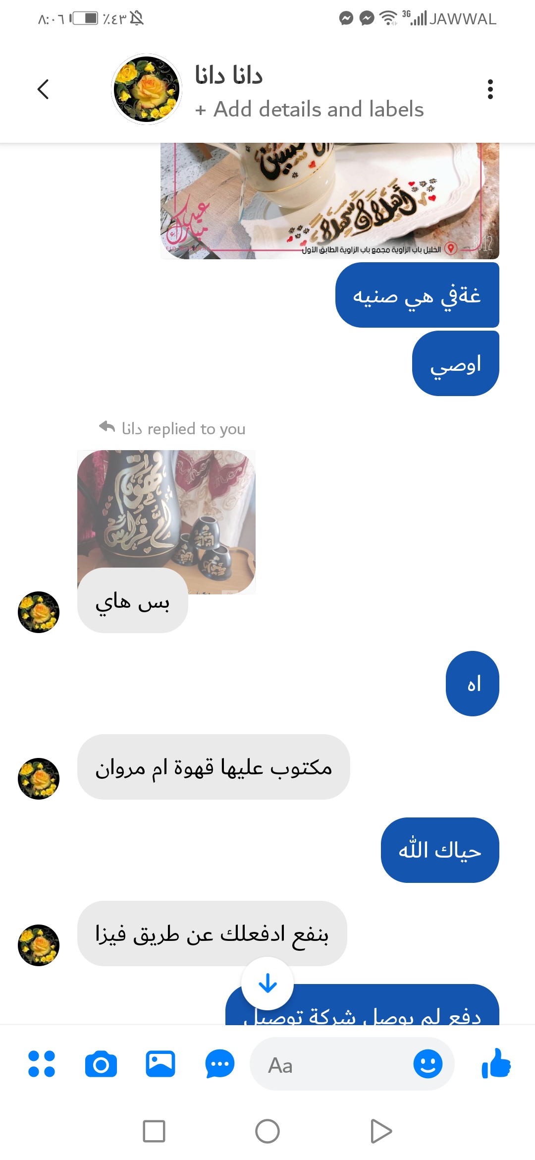 دله مع فناجين وصينه لون اسود بسعر 150شيكل وتوصيل 30شيكل المجموع 180شيكل