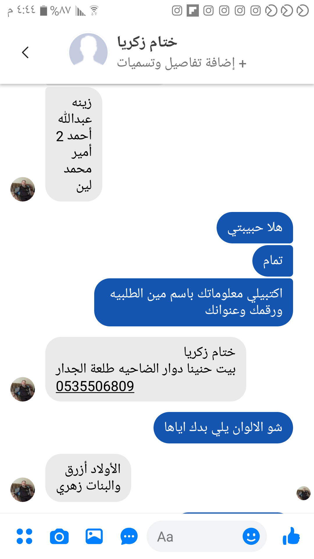 2-عبدالله لون ازرق 3-أحمد لون ازرق 4 - أحمد لون ازرق 5- أمير لون أزرق 6-محمد لون أزرق 7-لين لون زهري