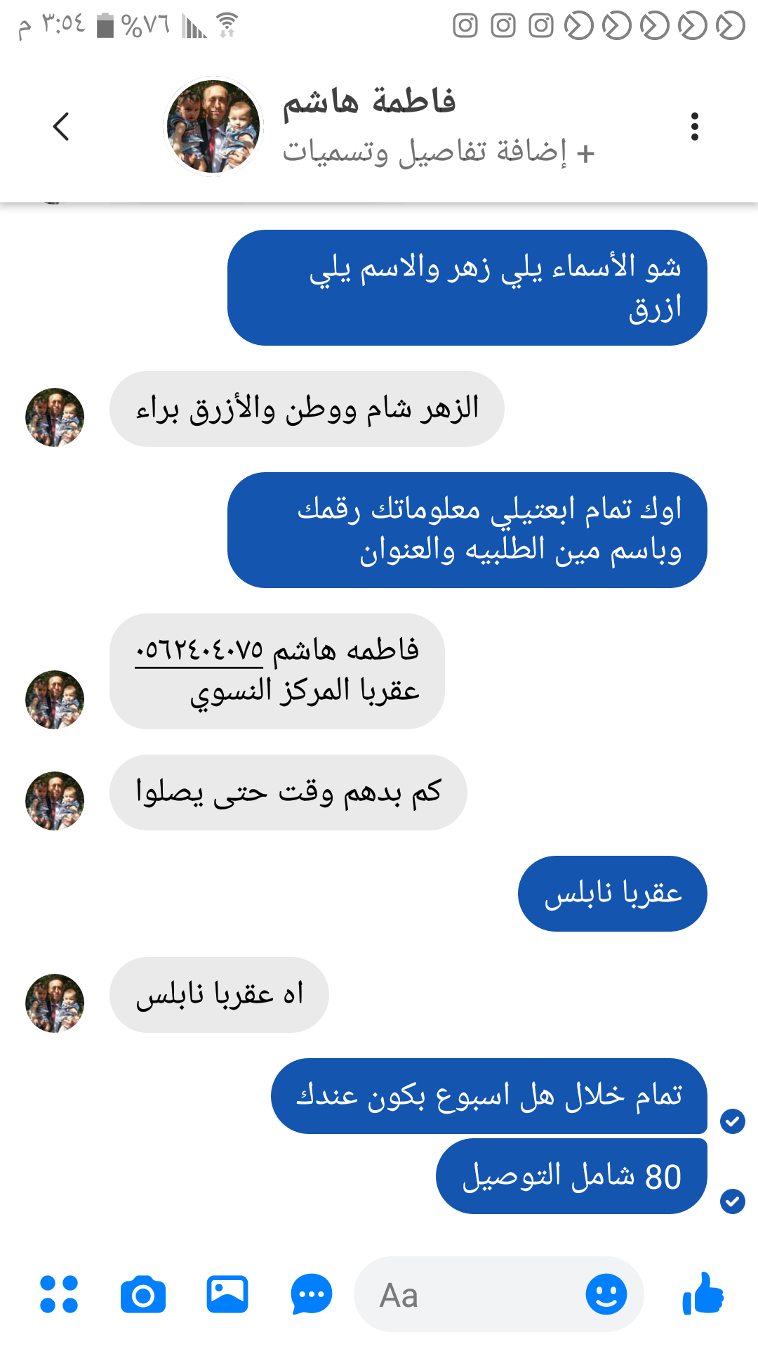 تلات فوانيس... شام لون زهري ... وطن لون زهري ... براء لون ازرق ... اجمالي المبلغ شامل التوصيل 115