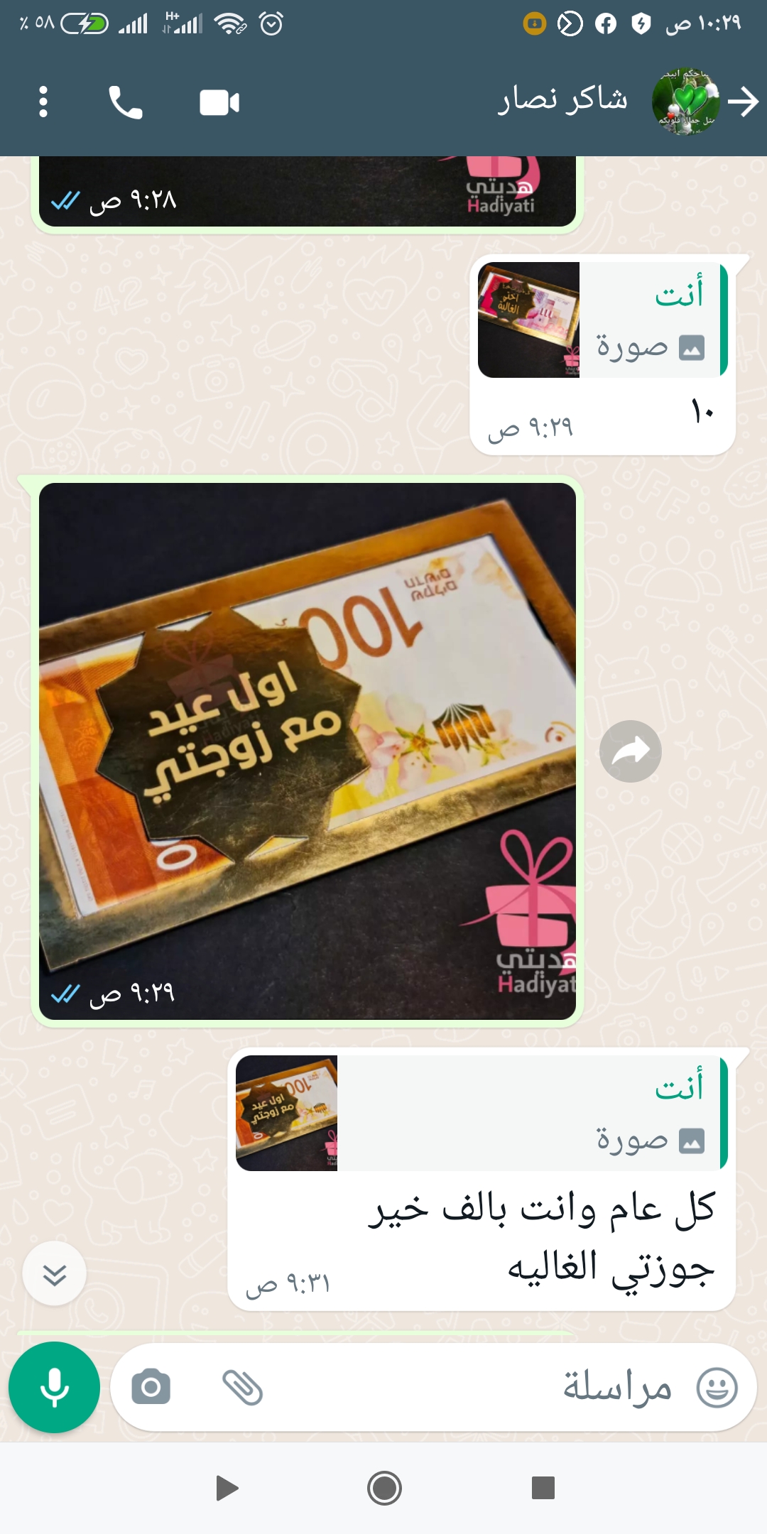 1 معايدة كرتون مع عبارة كل عام وأنتي بخير يا زوجتي الغالية