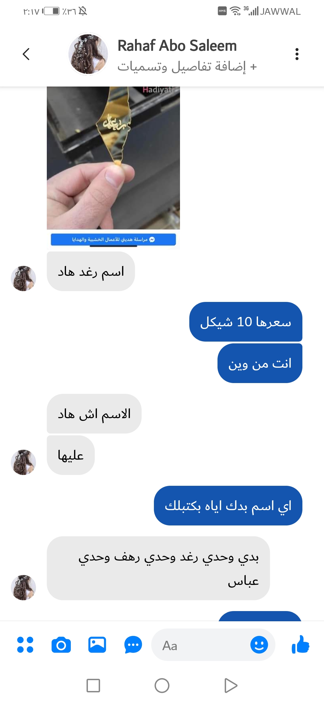 عدد 3 مكتوب عليها رغد ورهف وعباس