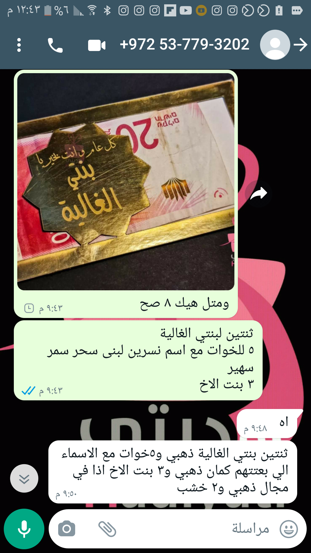 عدد 5 خمسه اختي الغاليه مع الأسماء ذهبي كرتون ....