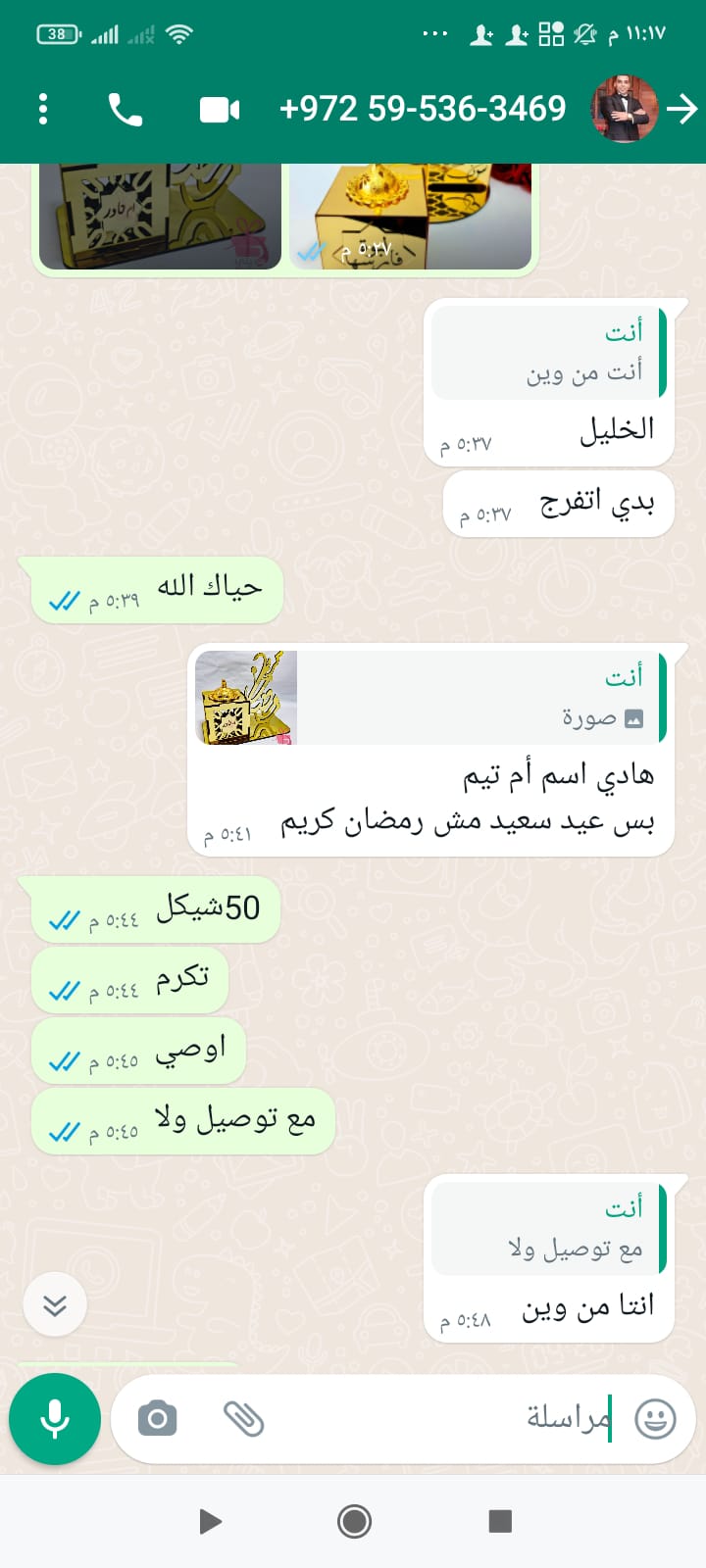 هدايا مع مبخره مكتوب عليها اسم أم تيم عيد سعيد بدل رمضان كريم لون ذهبي السعر 50شيكل التسليم من المحل