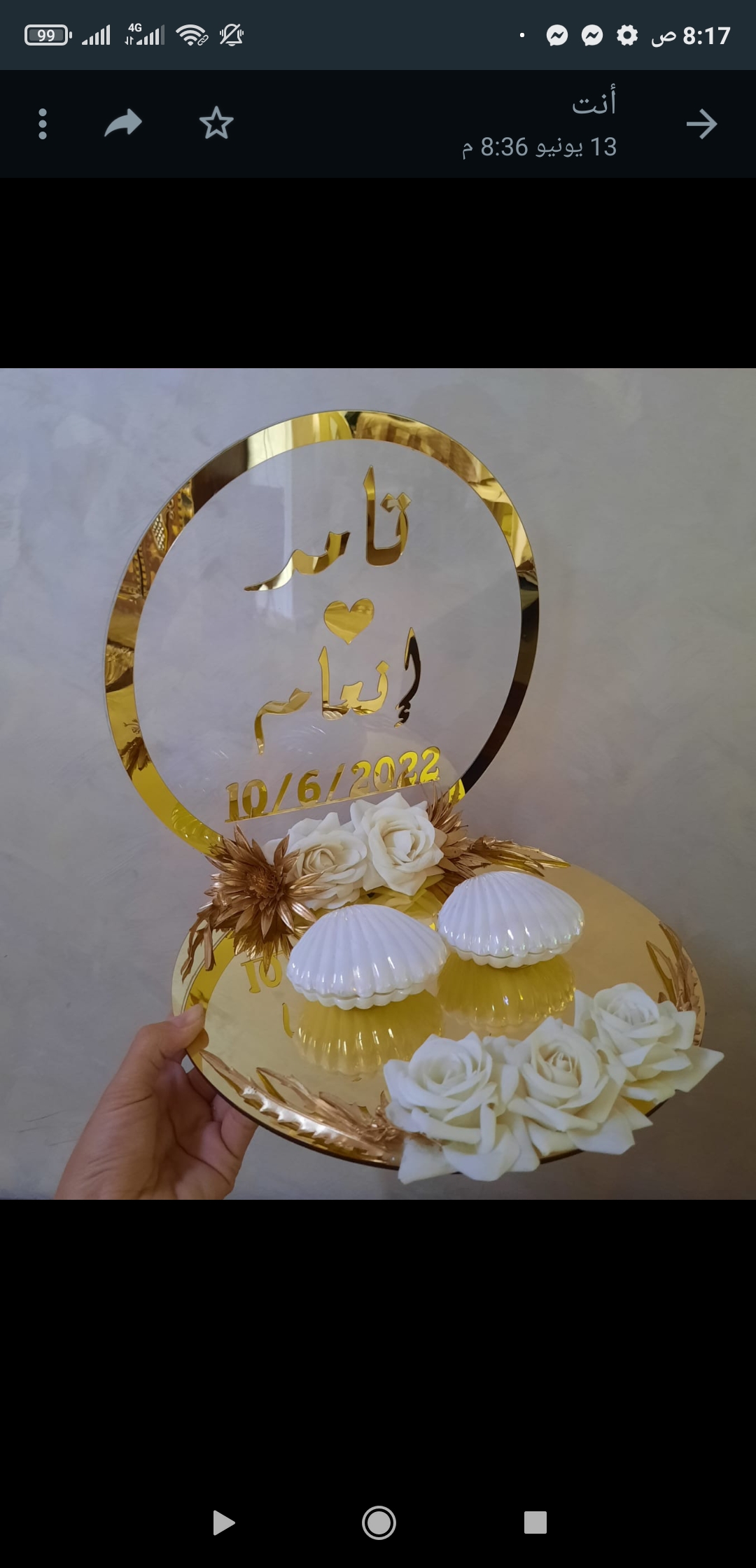 ستاند دبل نفس الصورة ونفس التزيين بس الظهر بدنا اياه خواتم مش دائرة عادية الاسماء ( Amani,Mofeed) والتاريخ 22/7/2022