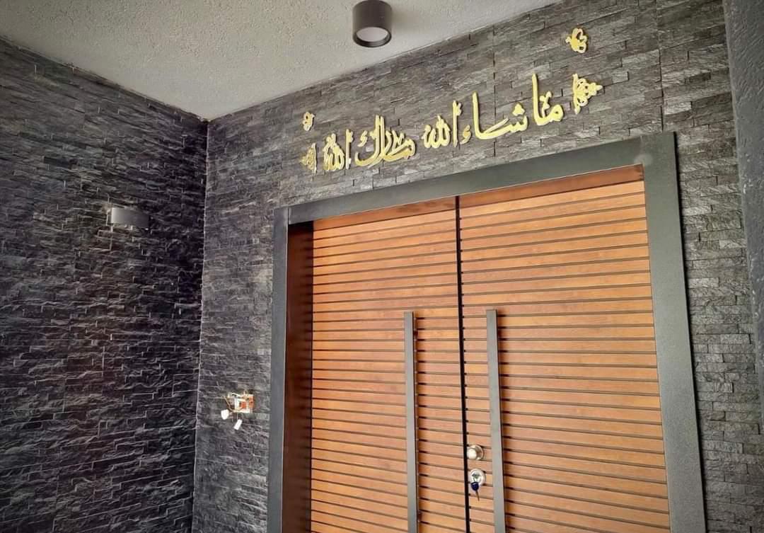 ماشاء الله تبارك الله لون ذهبي مع اقواس متل الصورة...