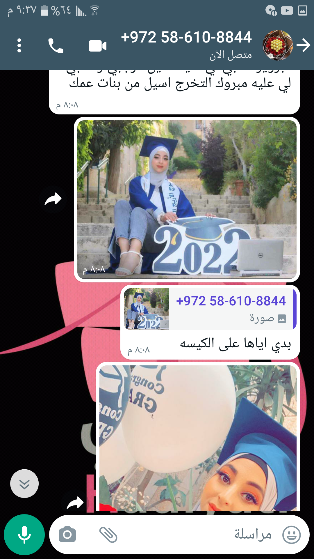 على المج صورة وتحتها مبروك التخرج أسيل